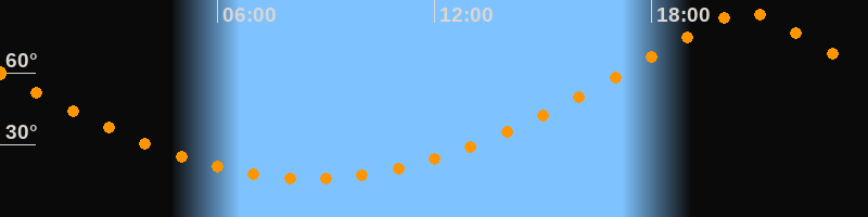 | Höchster Stand (Kulmination) | 20:35 Uhr (h = 85,3°) |