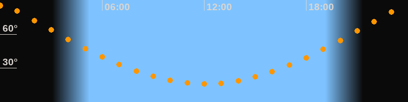 | Höchster Stand (Kulmination) | 00:01 Uhr (h = 85,3°) |