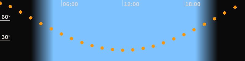 | Höchster Stand (Kulmination) | 00:02 Uhr (h = 85,3°) |