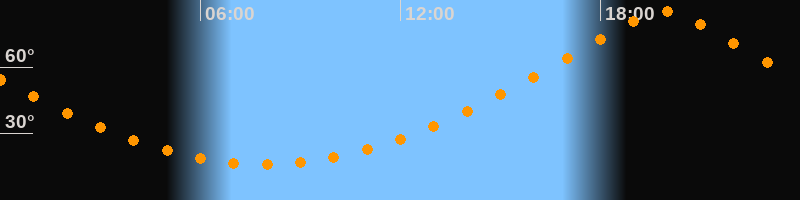 | Höchster Stand (Kulmination) | 19:54 Uhr (h = 85,3°) |