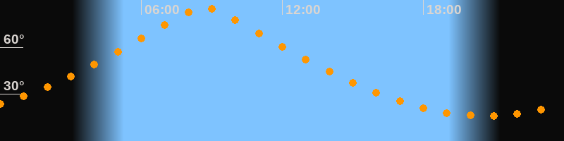 | Höchster Stand (Kulmination) | 08:42 Uhr (h = 85,3°) |