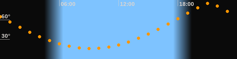 | Höchster Stand (Kulmination) | 21:10 Uhr (h = 85,3°) |