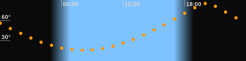 | Höchster Stand (Kulmination) | 20:07 Uhr (h = 85,3°) |
