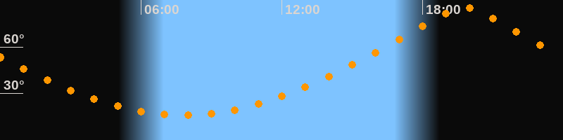| Höchster Stand (Kulmination) | 19:47 Uhr (h = 85,3°) |