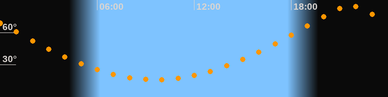 | Höchster Stand (Kulmination) | 21:38 Uhr (h = 85,3°) |
