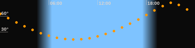 | Höchster Stand (Kulmination) | 21:07 Uhr (h = 85,3°) |