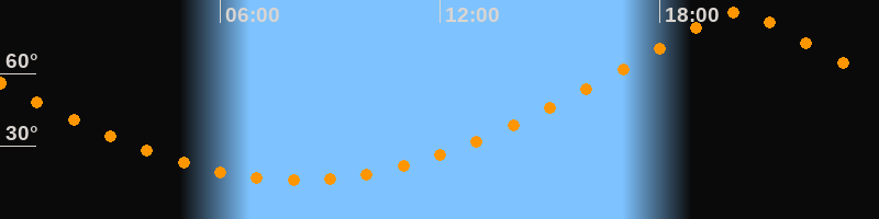 | Höchster Stand (Kulmination) | 20:08 Uhr (h = 85,3°) |