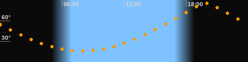 | Höchster Stand (Kulmination) | 19:56 Uhr (h = 85,3°) |