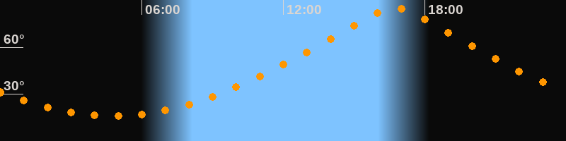 | Höchster Stand (Kulmination) | 16:43 Uhr (h = 85,3°) |
