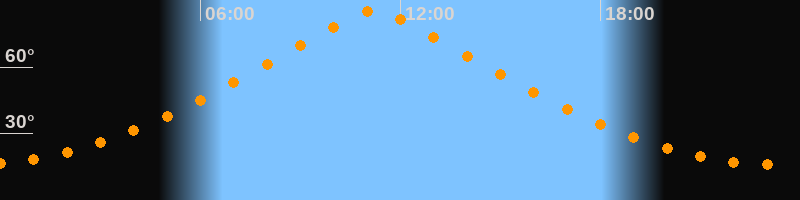 | Höchster Stand (Kulmination) | 11:13 Uhr (h = 85,3°) |