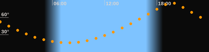 | Höchster Stand (Kulmination) | 19:41 Uhr (h = 85,3°) |