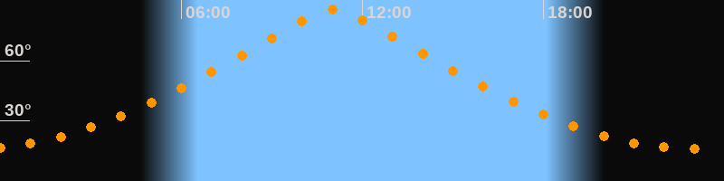 | Höchster Stand (Kulmination) | 11:02 Uhr (h = 85,3°) |