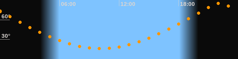 | Höchster Stand (Kulmination) | 22:07 Uhr (h = 85,3°) |