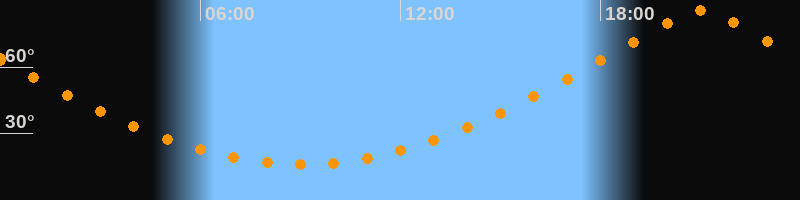 | Höchster Stand (Kulmination) | 21:01 Uhr (h = 85,3°) |