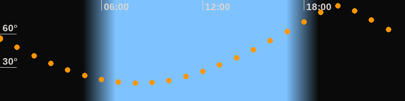 | Höchster Stand (Kulmination) | 20:06 Uhr (h = 85,3°) |