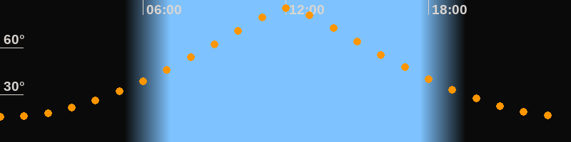 | Höchster Stand (Kulmination) | 12:06 Uhr (h = 85,3°) |