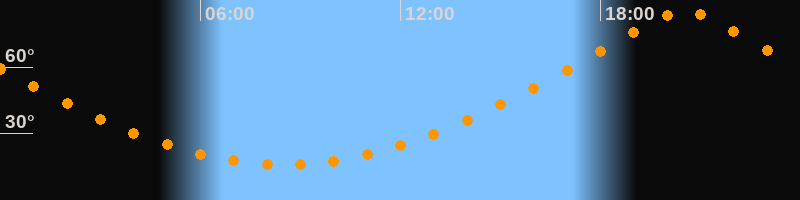 | Höchster Stand (Kulmination) | 20:30 Uhr (h = 85,3°) |