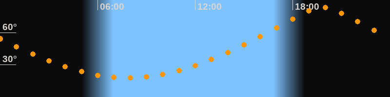 | Höchster Stand (Kulmination) | 19:50 Uhr (h = 83,5°) |