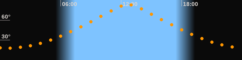 | Höchster Stand (Kulmination) | 12:42 Uhr (h = 83,5°) |
