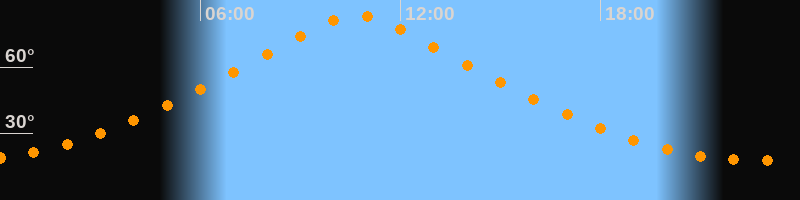 | Höchster Stand (Kulmination) | 10:42 Uhr (h = 83,5°) |