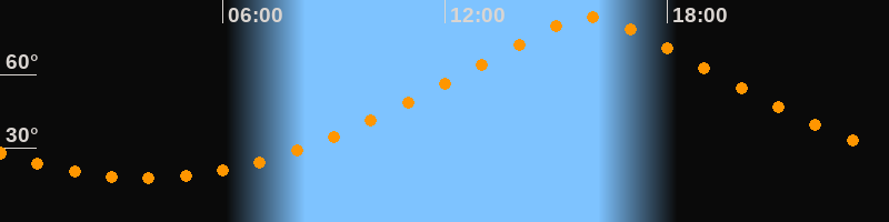 | Höchster Stand (Kulmination) | 15:53 Uhr (h = 83,5°) |