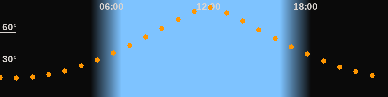 | Höchster Stand (Kulmination) | 12:54 Uhr (h = 83,5°) |