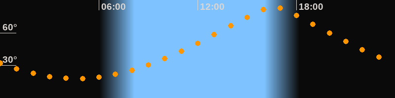 | Höchster Stand (Kulmination) | 16:36 Uhr (h = 83,5°) |