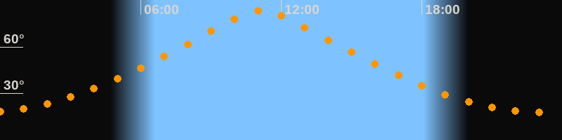 | Höchster Stand (Kulmination) | 11:10 Uhr (h = 83,5°) |