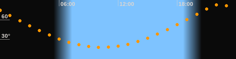 | Höchster Stand (Kulmination) | 22:21 Uhr (h = 83,5°) |