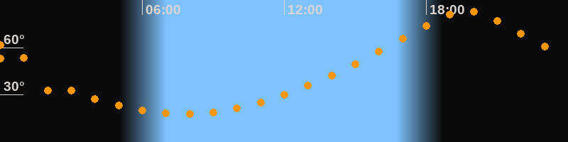 | Höchster Stand (Kulmination) | 19:43 Uhr (h = 83,5°) |
