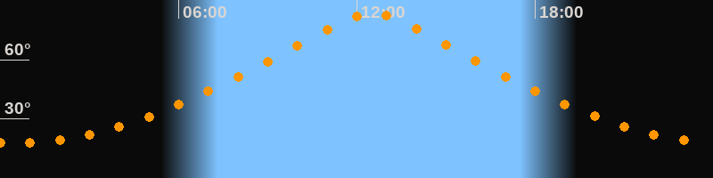 | Höchster Stand (Kulmination) | 12:30 Uhr (h = 83,5°) |