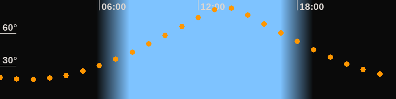 | Höchster Stand (Kulmination) | 13:39 Uhr (h = 83,5°) |