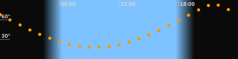 | Höchster Stand (Kulmination) | 21:31 Uhr (h = 83,5°) |