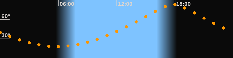 | Höchster Stand (Kulmination) | 17:51 Uhr (h = 83,5°) |
