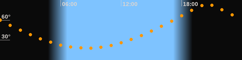 | Höchster Stand (Kulmination) | 20:33 Uhr (h = 83,5°) |