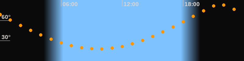 | Höchster Stand (Kulmination) | 21:37 Uhr (h = 83,5°) |