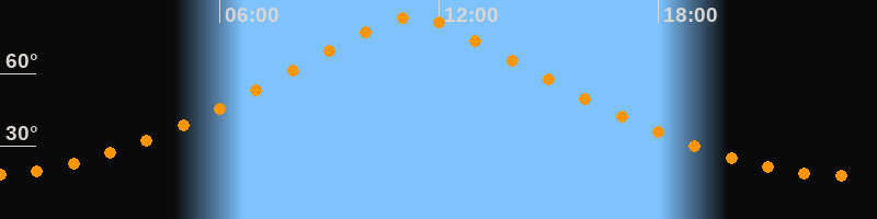 | Höchster Stand (Kulmination) | 11:16 Uhr (h = 83,5°) |