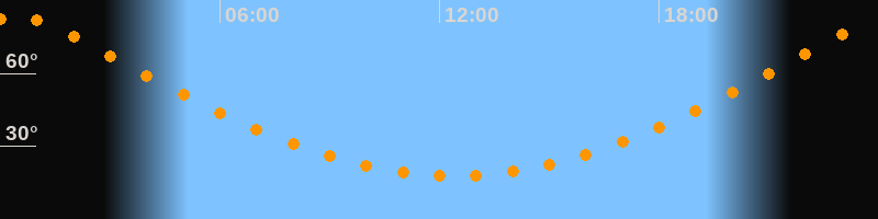 | Höchster Stand (Kulmination) | 00:24 Uhr (h = 83,5°) |