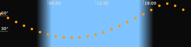 | Höchster Stand (Kulmination) | 21:00 Uhr (h = 83,5°) |