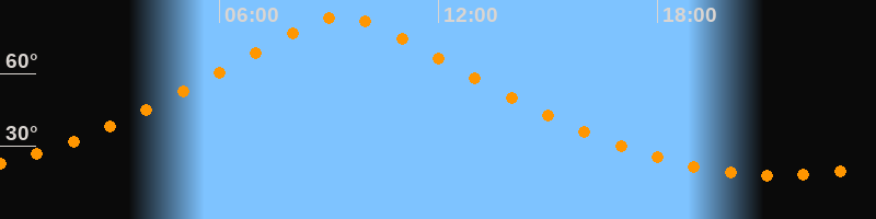 | Höchster Stand (Kulmination) | 09:20 Uhr (h = 83,5°) |