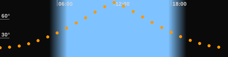 | Höchster Stand (Kulmination) | 12:03 Uhr (h = 86,4°) |
