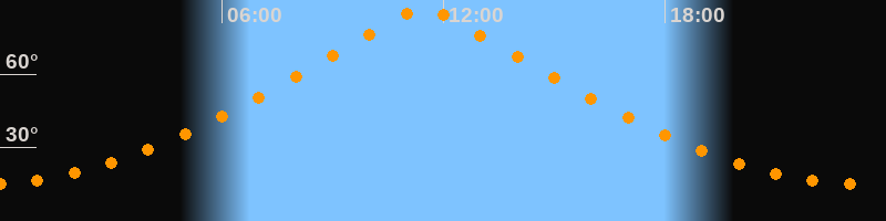 | Höchster Stand (Kulmination) | 11:28 Uhr (h = 86,4°) |