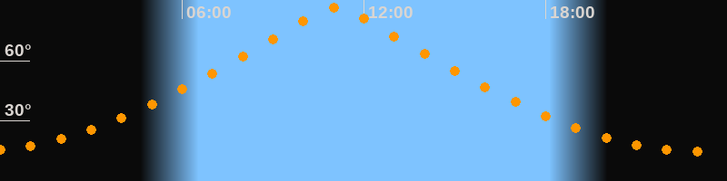 | Höchster Stand (Kulmination) | 11:04 Uhr (h = 86,4°) |