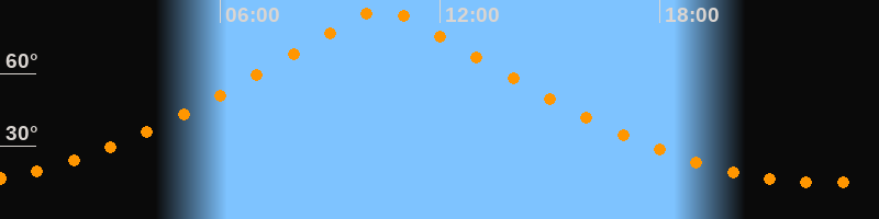 | Höchster Stand (Kulmination) | 10:25 Uhr (h = 86,4°) |
