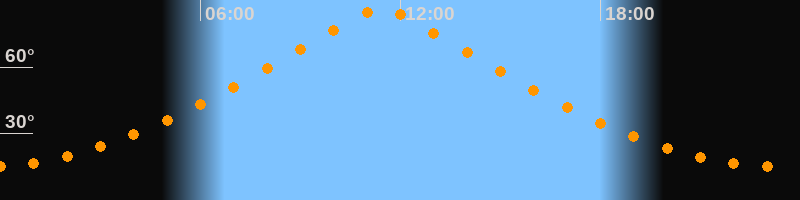 | Höchster Stand (Kulmination) | 11:25 Uhr (h = 86,4°) |