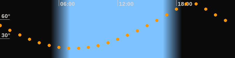 | Höchster Stand (Kulmination) | 19:29 Uhr (h = 86,4°) |