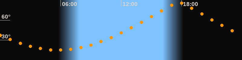 | Höchster Stand (Kulmination) | 17:43 Uhr (h = 86,4°) |