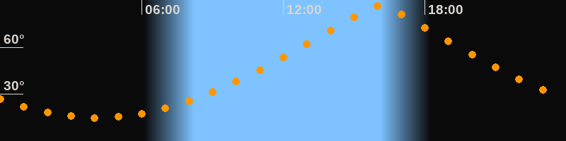 | Höchster Stand (Kulmination) | 16:06 Uhr (h = 86,4°) |