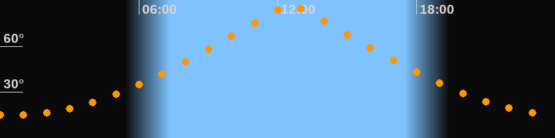 Höchster Stand (Kulmination)12:34 Uhr (h = 86,4°)