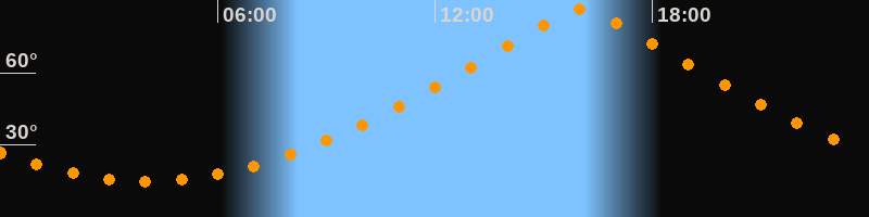| Höchster Stand (Kulmination) | 16:03 Uhr (h = 86,4°) |